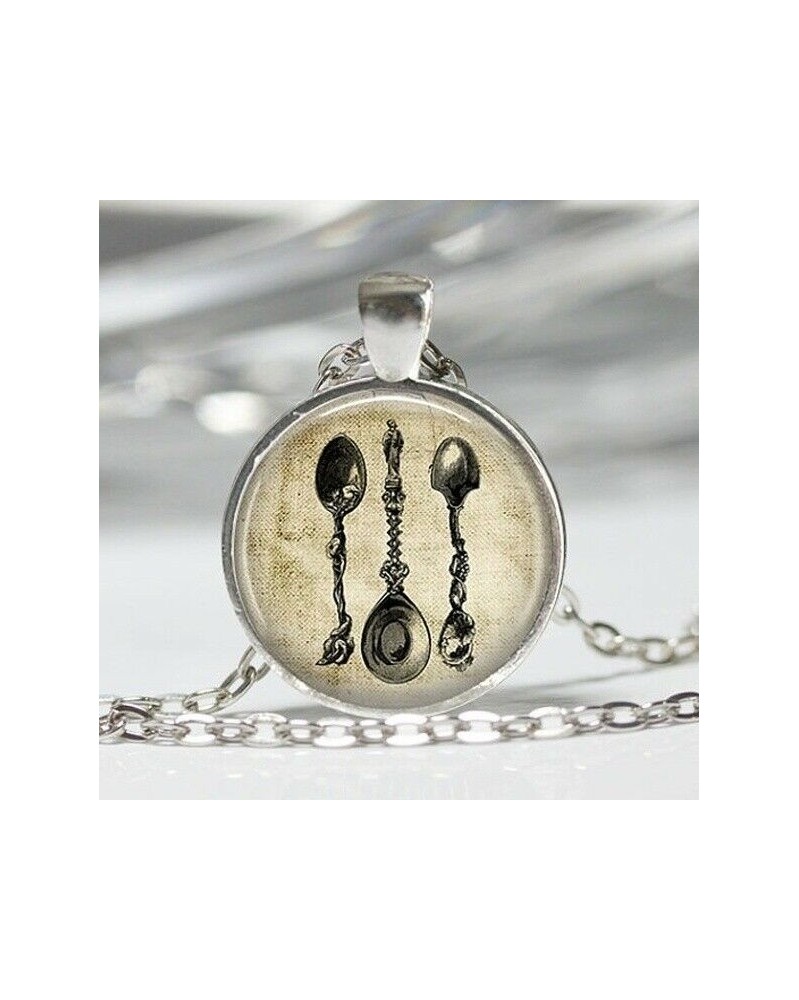 Nincs szín - Kanál nyaklánc Vintage ezüst konyhai szakácsok főzés Cabochon medál