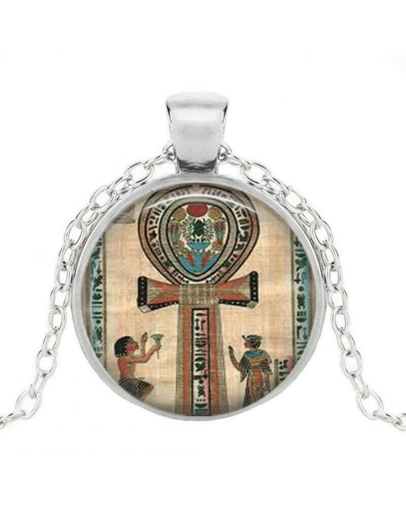 Nincs szín - Kereszt nyaklánc üveg csempe nyaklánc Ankh nyaklánc egyiptomi nyaklánc ezüst