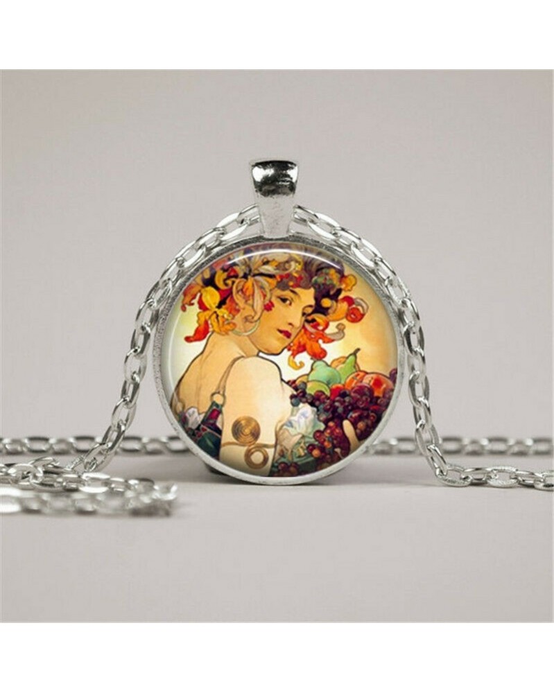 Nincs szín - Vintage őszi szüret art Photo Cabochon üveg ezüst lánc medál nyaklánc