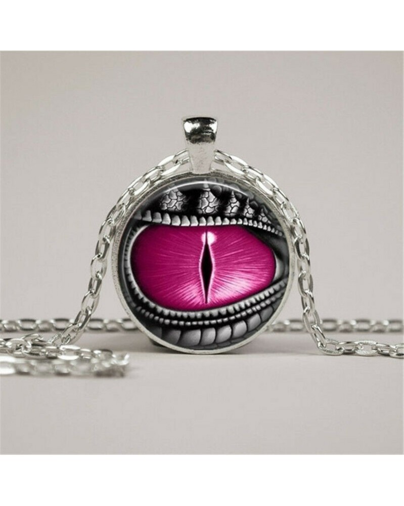 Nincs szín - Vintage rózsaszín sárkányszemű fotó Cabochon üveg ezüst lánc medál nyaklánc