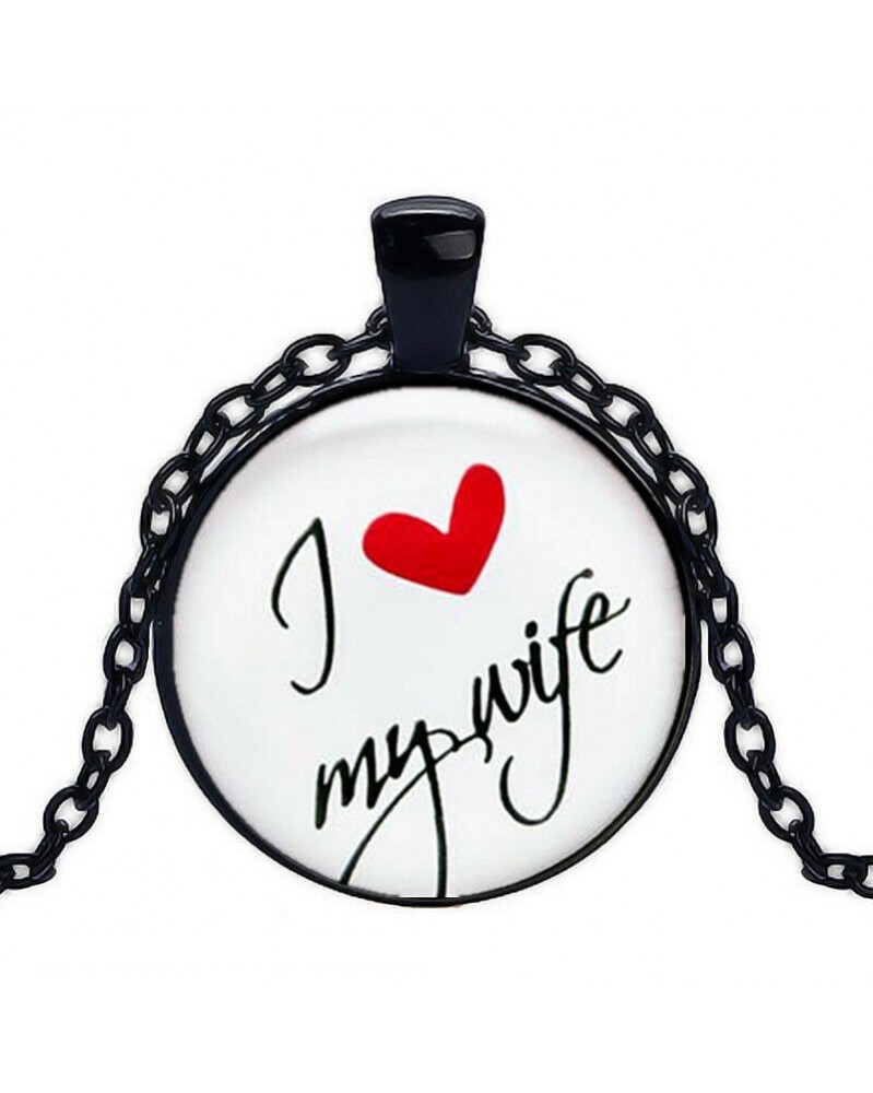 Nincs szín - Szeretem a feleségemet Photo Cabochon üveg fekete lánc medál nyaklánc