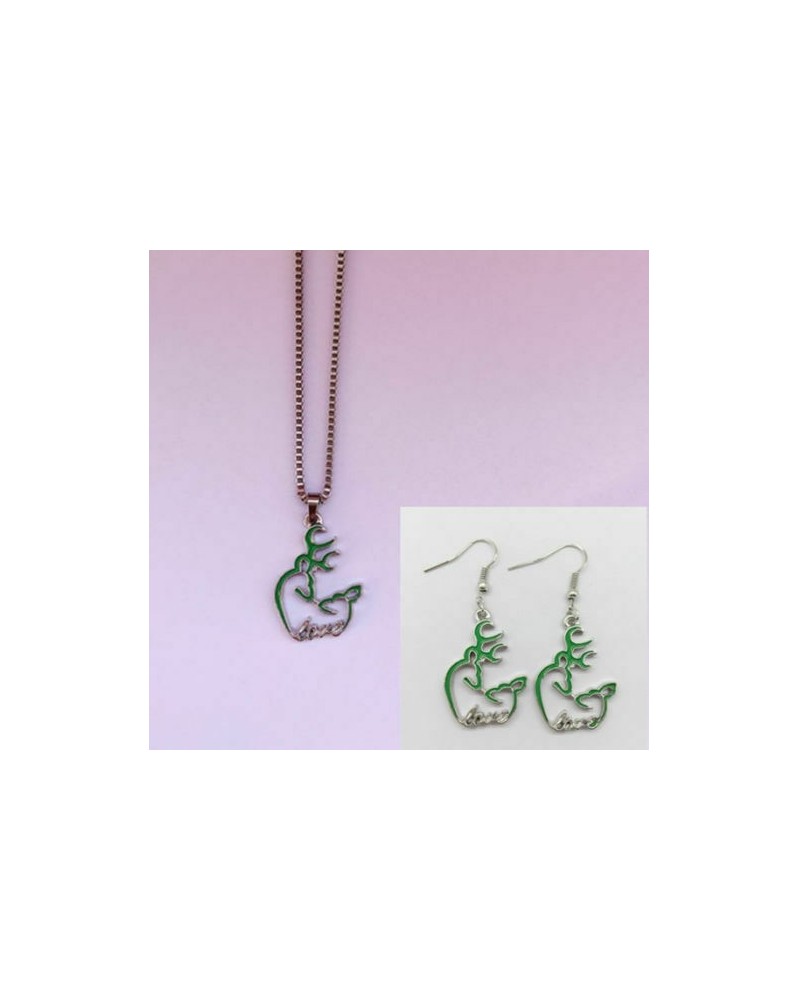 Nincs szín - 1 készlet Heart Lover Browning Szarvas nyaklánc és fülbevaló divatékszer nők (zöld)