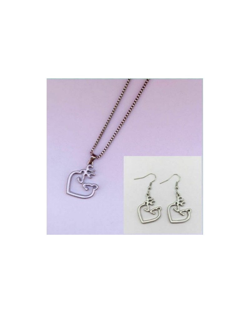 Nincs szín - 1 készlet Heart Browning Szarvas nyaklánc és fülbevaló divatékszer ajándék nőknek (fehér)