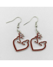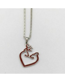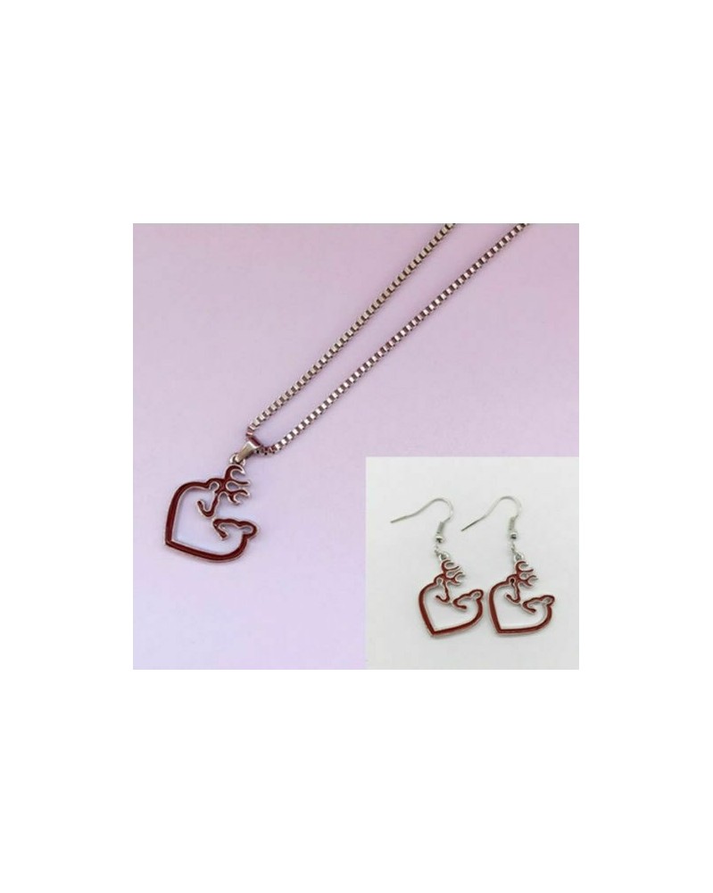 Nincs szín - 1 készlet Heart Browning Szarvas nyaklánc és fülbevaló divatékszer ajándék nők (piros)