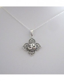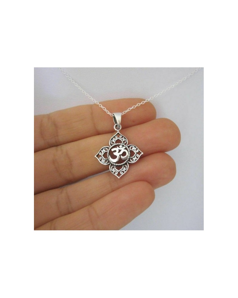 Nincs szín - Filigrán OHM OM AUM Buddha Lotus ezüst medál nyaklánc, buddhista, jóga nyaklánc