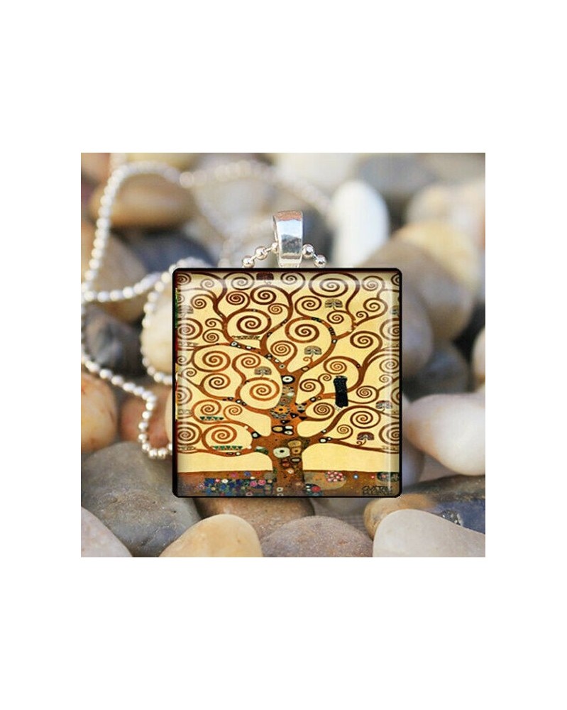 Nincs szín - TREE LIFE fa Művészeti bölcsesség Üveg csempe medál nyaklánc ezüst ékszer nagykereskedelem