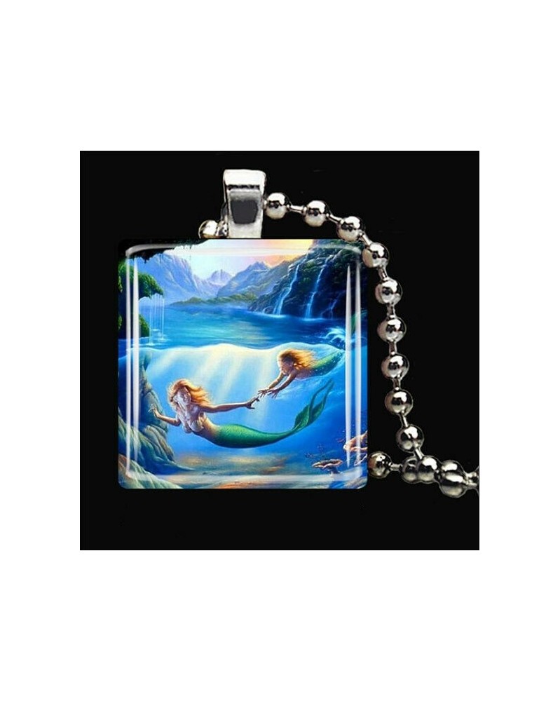 Nincs szín - ANYA ÉS LÁNY sellők Mermaid Ocean Fantasy üvegcserép medál nyaklánc