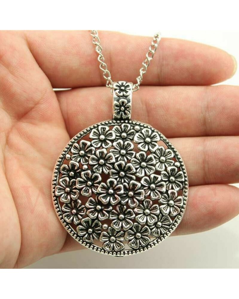 Nincs szín - Új divat virággal borított korong Medálok kerek keresztlánc rövid, hosszú Női