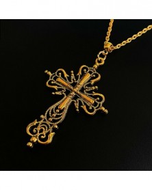 Nincs szín - Antik arany nagy viktoriánus kereszt nyaklánc, aranylánc vallásos gótikus Jézus