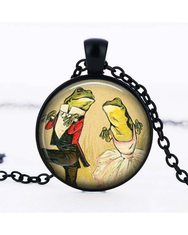 Nincs szín - Jitterbug Frogs Person Photo Tibet fekete Cabochon üveg medál lánc nyaklánc