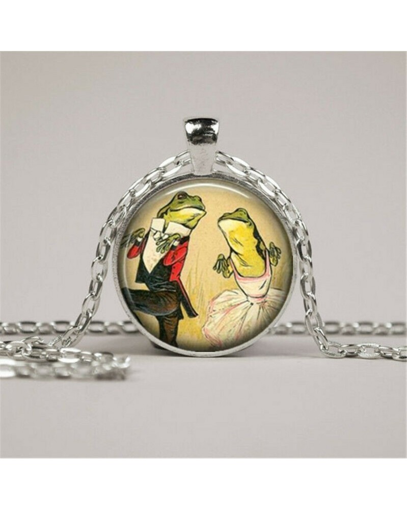 Nincs szín - Jitterbug Frogs Person Photo Tibet ezüst Cabochon üveg medál lánc nyaklánc
