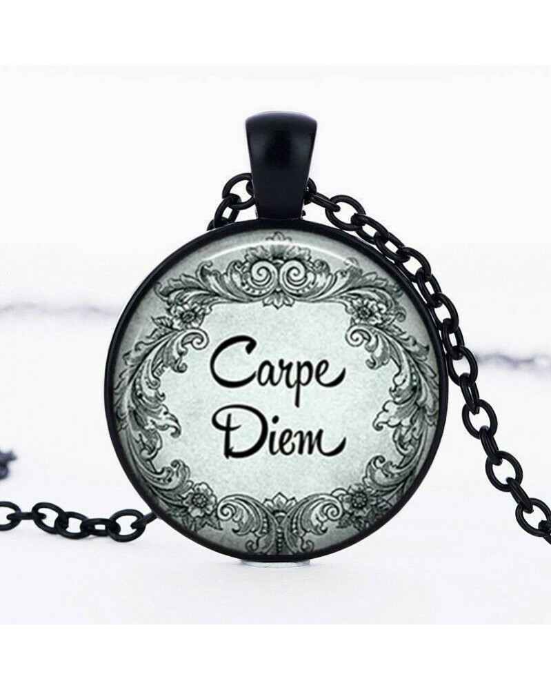 Nincs szín - Carpe Diem fénykép Tibet fekete Cabochon üveg medál lánc nyaklánc
