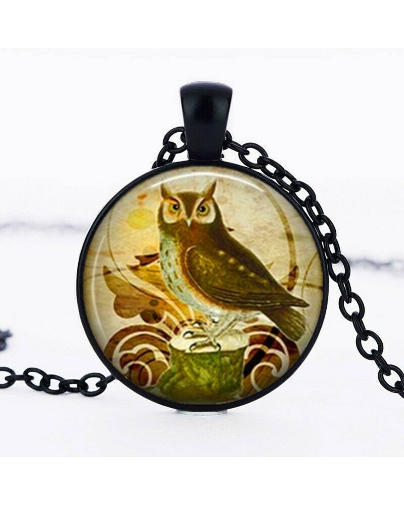 Nincs szín - Antik bagoly fénykép Tibet fekete Cabochon üveg medál lánc nyaklánc