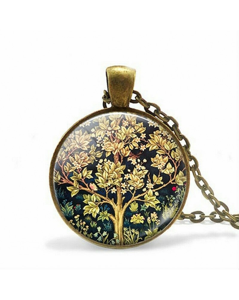 Nincs szín - Életfa művészet Fotó Tibet bronz Cabochon üveg medál lánc nyaklánc