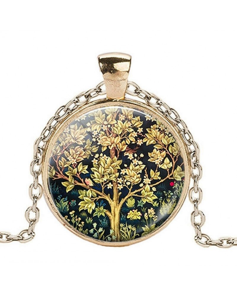 Nincs szín - Életfa művészet Fotó Tibet arany Cabochon üveg medál lánc nyaklánc