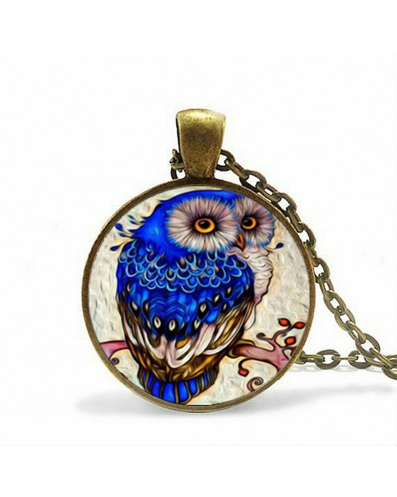 Nincs szín - Szép bagoly személy fotó Tibet bronz Cabochon üveg medál lánc nyaklánc