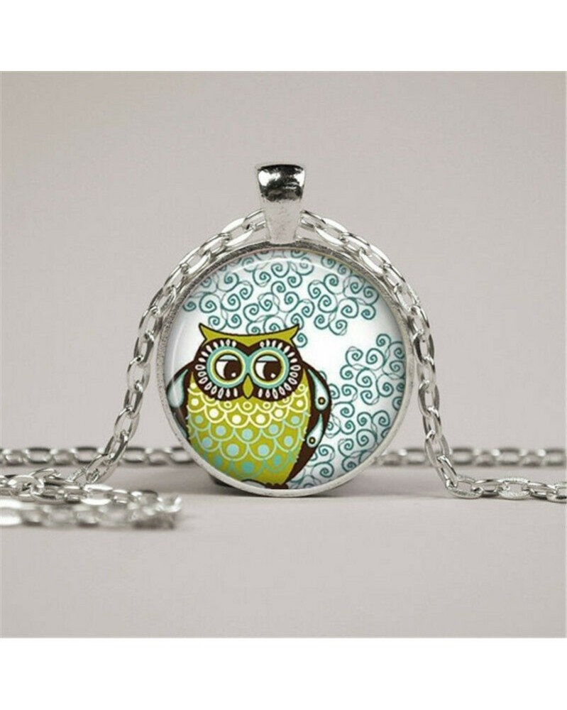 Nincs szín - Bagoly fotó Tibet ezüst Cabochon üveg medál lánc nyaklánc