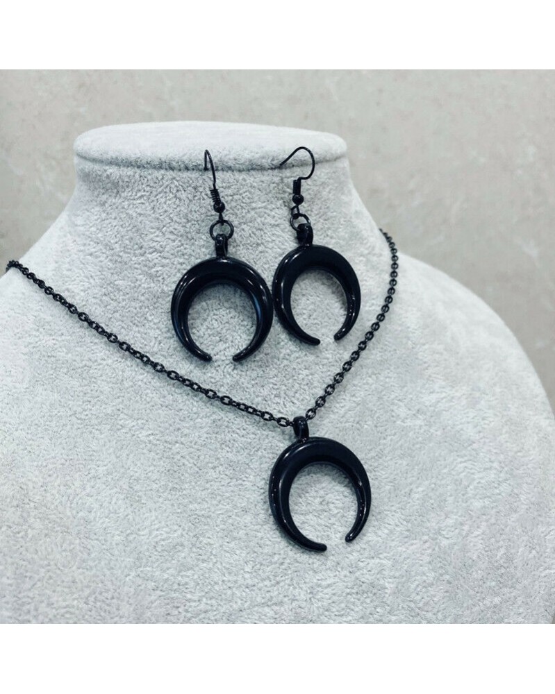 Nincs szín - Fekete Félhold Hold fülbevaló nyaklánc szarv medál lánc fekete nyaklánc nőknek