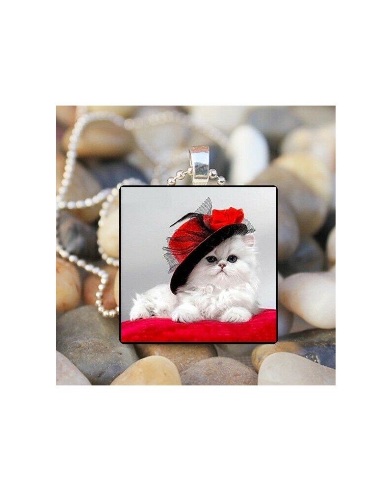 Nincs szín - Red Hat Art Cabochon üveg ezüst csempe lánc medál nyakláncot viselő macska ékszerek