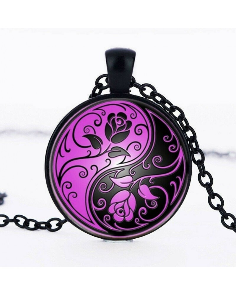Nincs szín - Yin Yang Roses Photo Hlack Cabochon üveg medál lánc nyaklánc