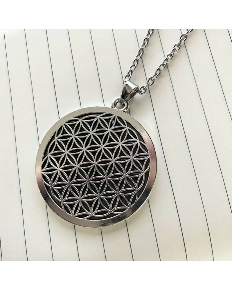 Nincs szín - Az élet divat virága Ezüst női medál nyaklánc Retro Om Symbol ékszerek