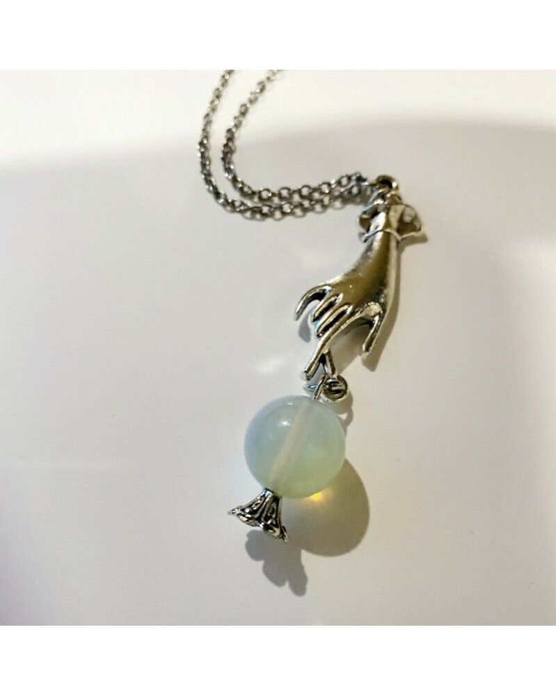 Nincs szín - fehér kristálygömb a kézben nyaklánc, Wicca, boszorkány, pogány, boszorkányok golyója, Steampunk