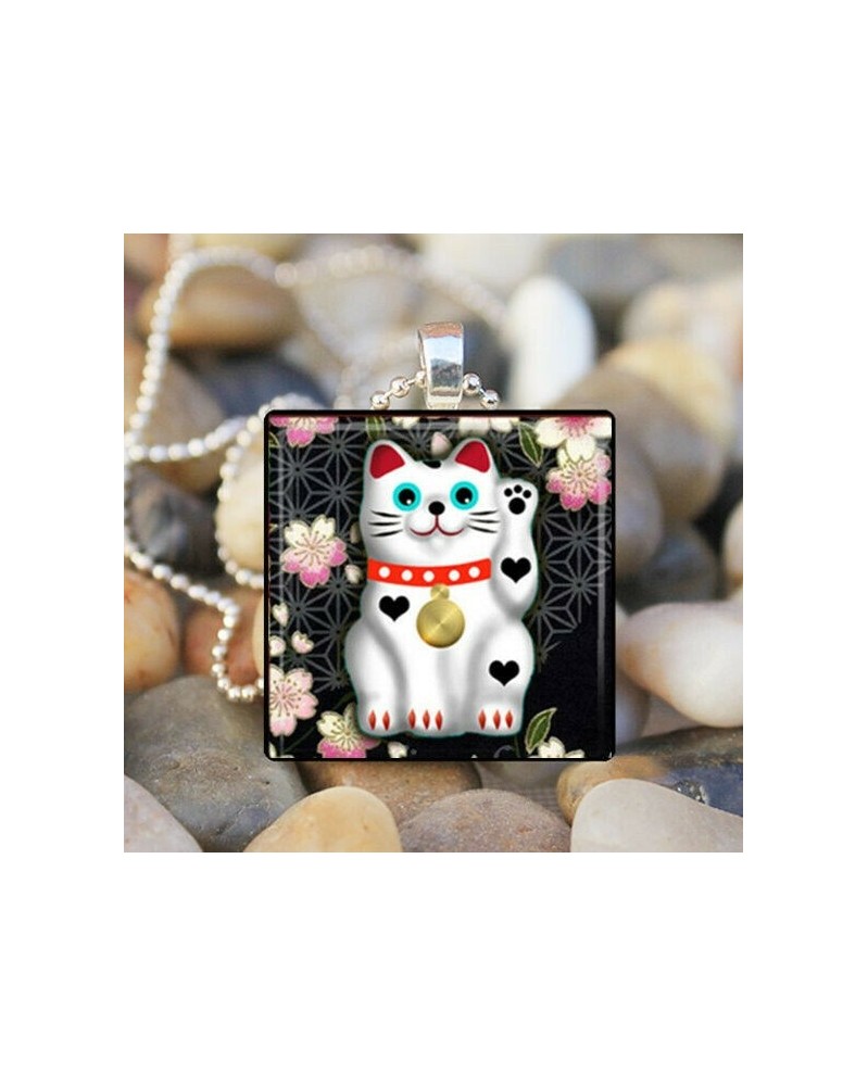Nincs szín - Japán szerencsés macska Maneki Neko Lucky Fortune macska üvegcserép medál nyaklánc