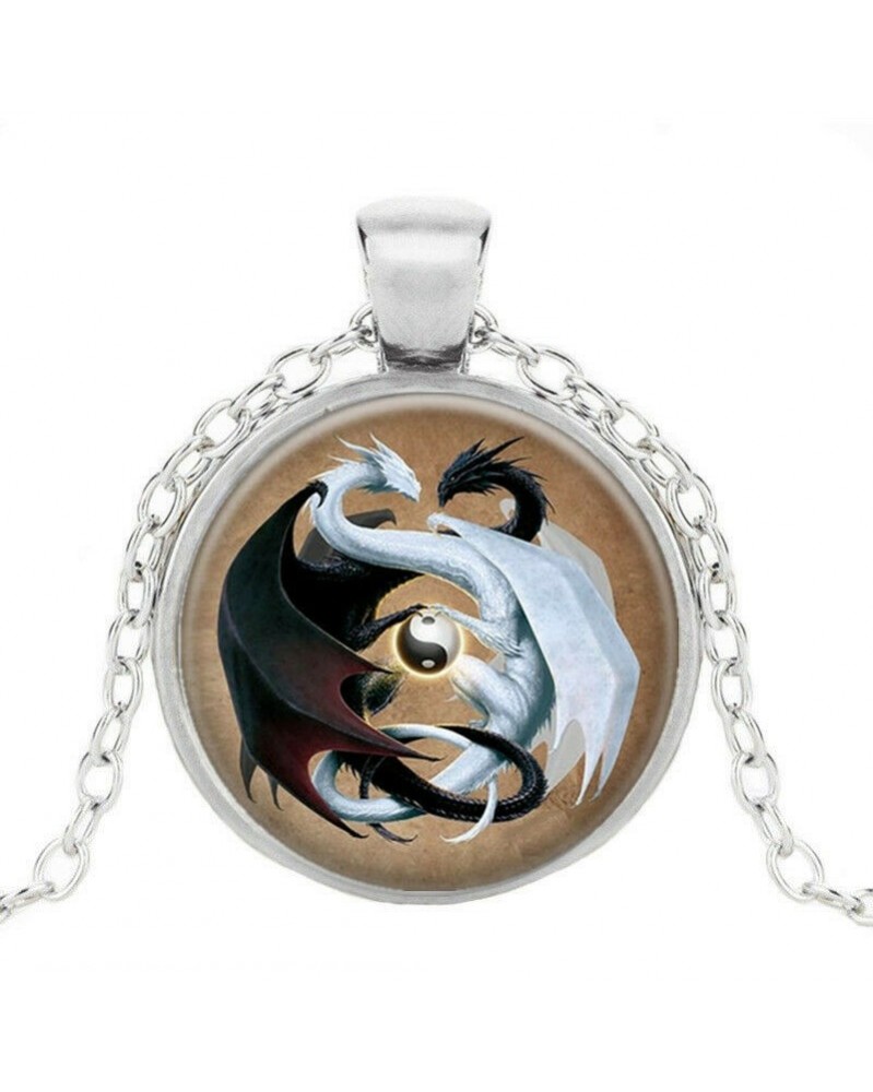Nincs szín - Fantasy Sárkány ékszerek Fotó ezüst Cabochon üveg medál lánc nyaklánc