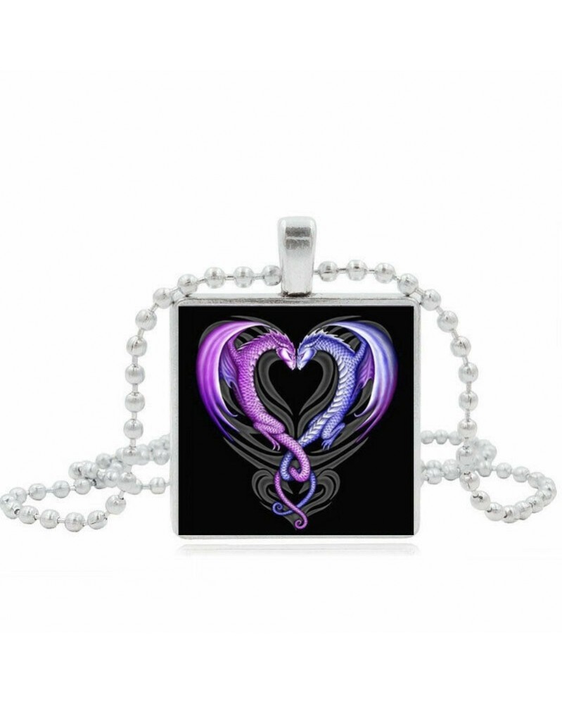 Nincs szín - Virág sárkány, pár karácsonyi Cabochon üveg ezüst lánc csempe medál nyaklánc