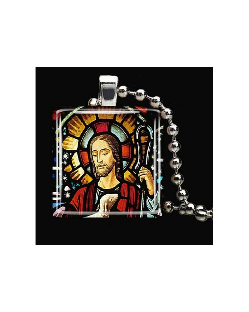 Nincs szín - JÉZUS KRISTUS Isten szent fia bárányjuhász vallásos üvegcserép medál nyaklánc