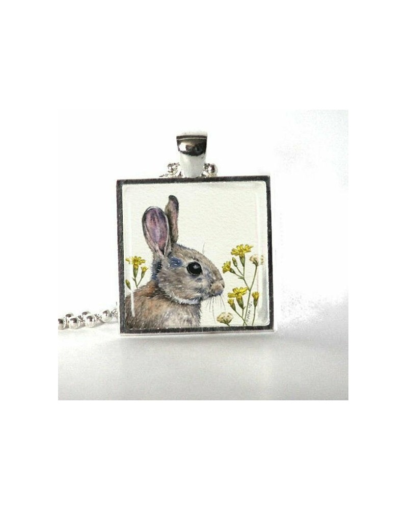 Nincs szín - ezüst-nyúl jellegű nyaklánc, vadon élő ékszerek, állat, nyuszi nyomtatás, nyaklánc