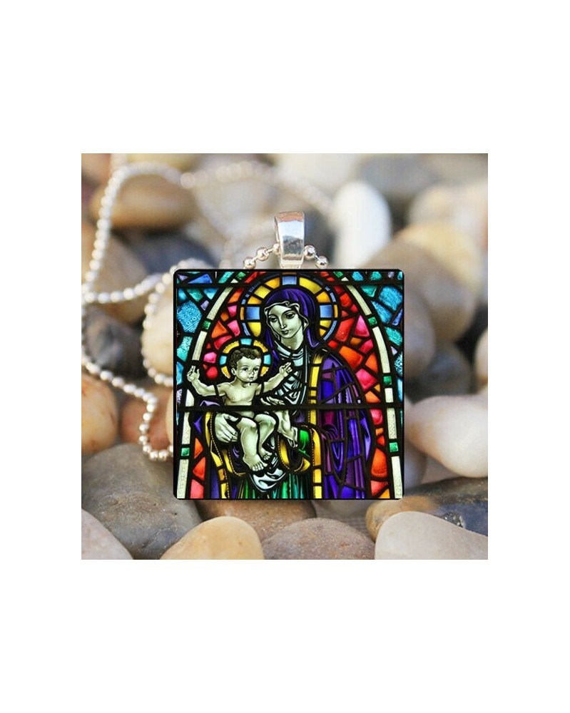Nincs szín - Szűz Mária és gyermeke ólomüveg csempe keresztény ékszerek keresztény nyaklánc