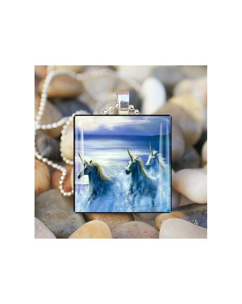 Nincs szín - Egyszarvúak a ködben - négyzet alakú üvegcserép medál nyaklánc egyszarvú ékszerek