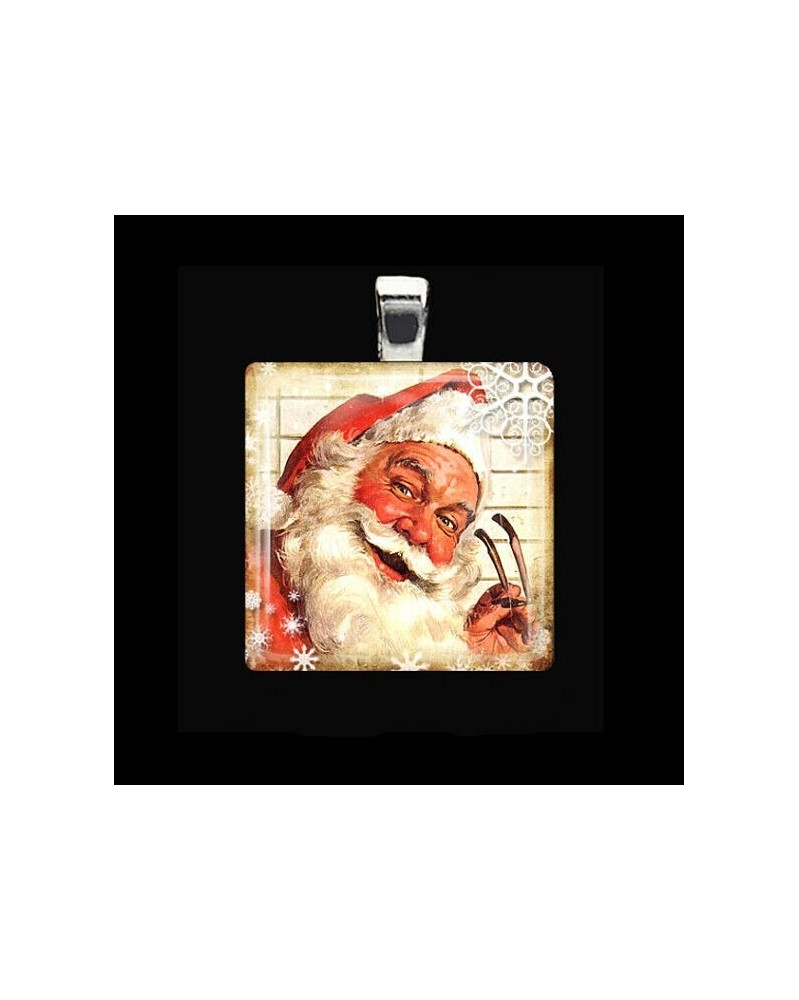 Nincs szín - VINTAGE SANTA CLAUS Karácsonyi St Nick hópehely üvegcsempe medál nyaklánc