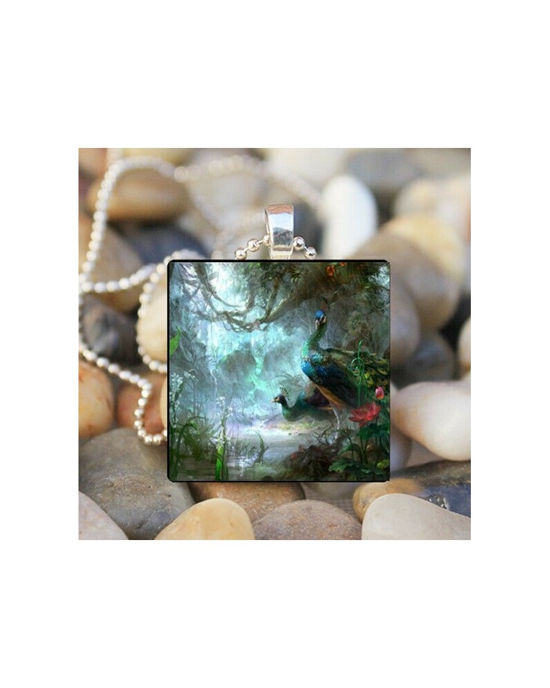 Nincs szín - gyönyörű páva nyaklánc üvegcserép medál nyaklánc művészeti medál ékszer szerelmese