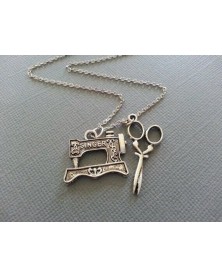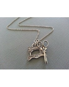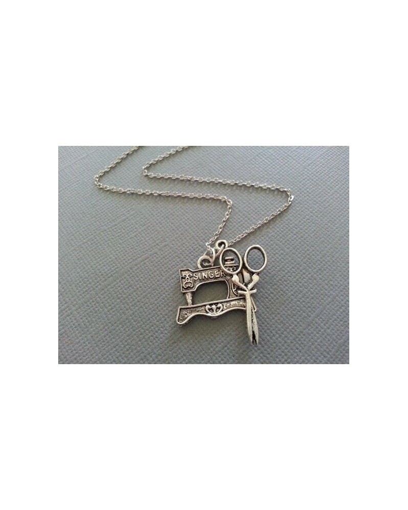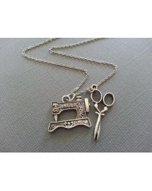 Nincs szín - A csatorna nyaklánc - varrógép és olló antik ezüst színben