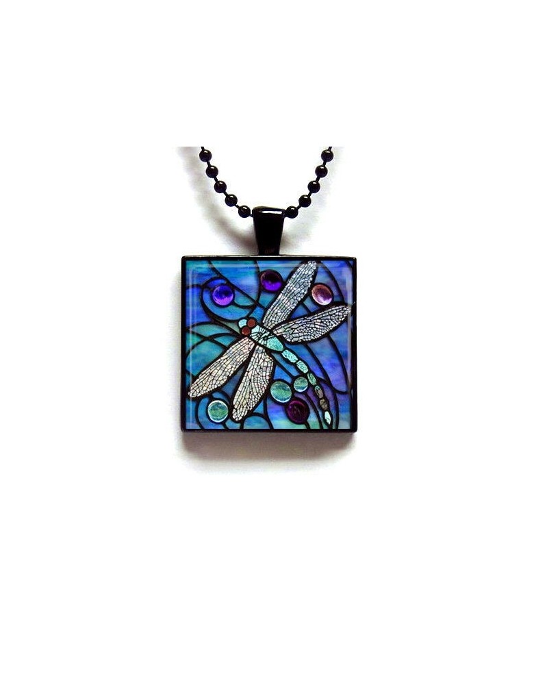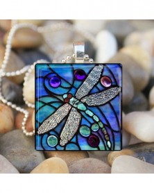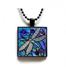 fekete - KÉK DRAGONFLY rovar tavaszi kerti üveg medál nyaklánc ezüst / bronz / fekete