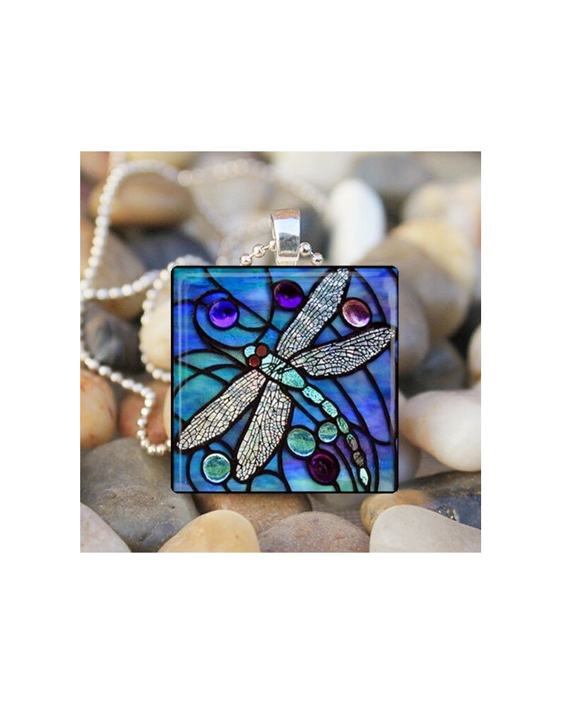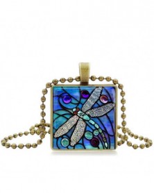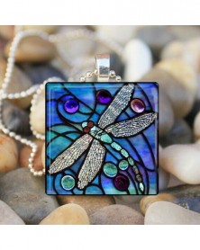 Ezüst - KÉK DRAGONFLY rovar tavaszi kerti üveg medál nyaklánc ezüst / bronz / fekete