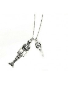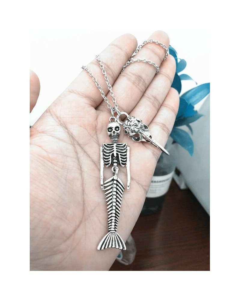 Nincs szín - Punk ékszer sellő koponya csontváz varjú fej madár koponya nyaklánc kézzel készített
