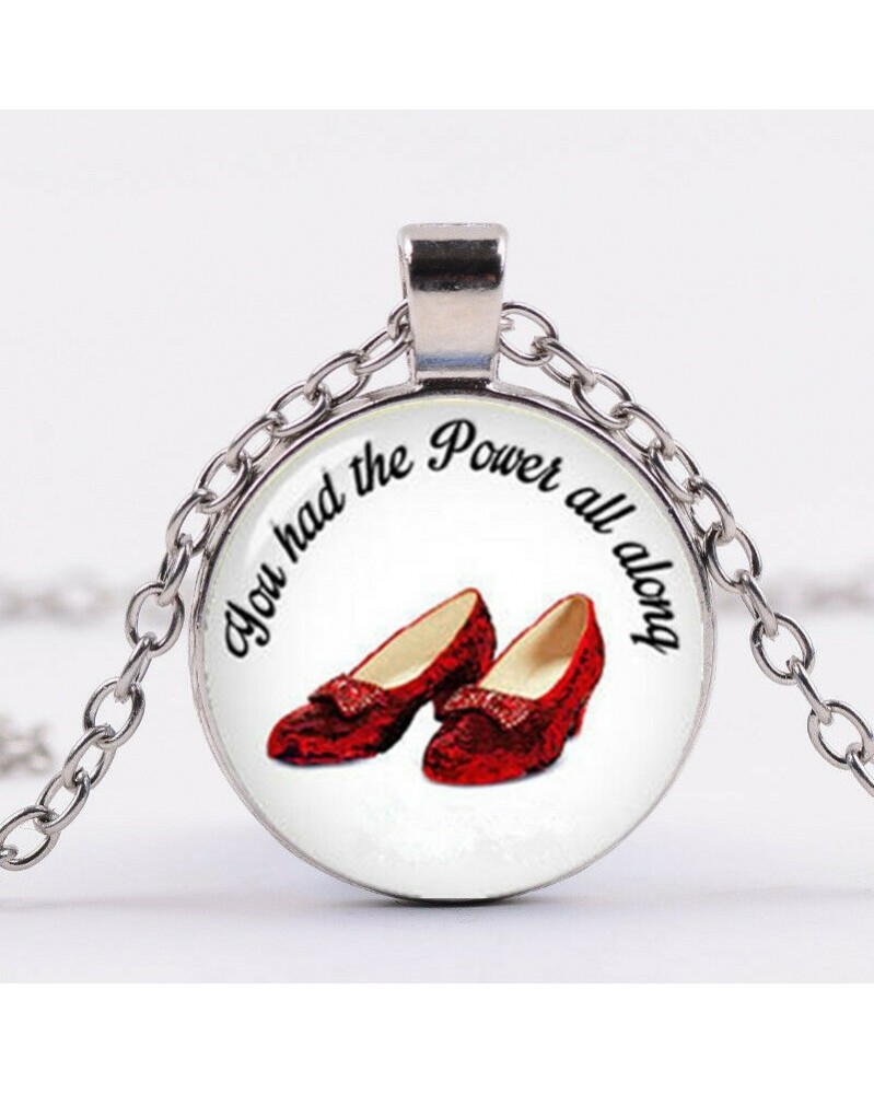 Nincs szín - Rubin papucs nyaklánc varázsló Oz Glass Cabochon nyaklánc lánc medál ezüst