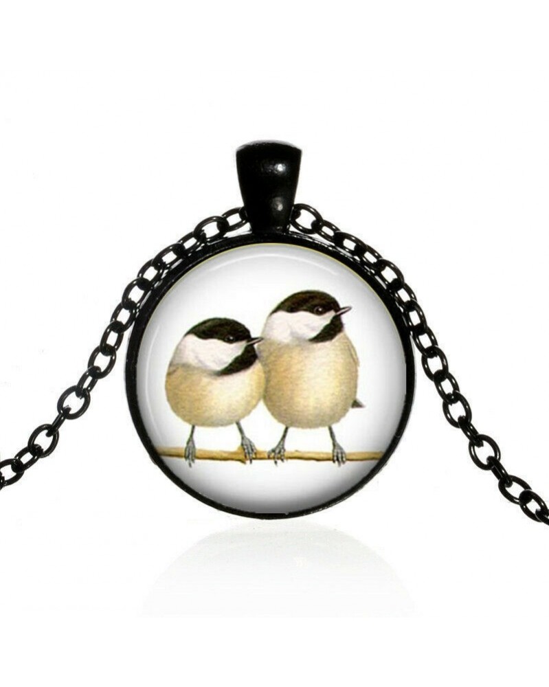 Nincs szín - Chickadees Birds lover medál Glass Dome lánc medál nyaklánc nagykereskedelem fekete