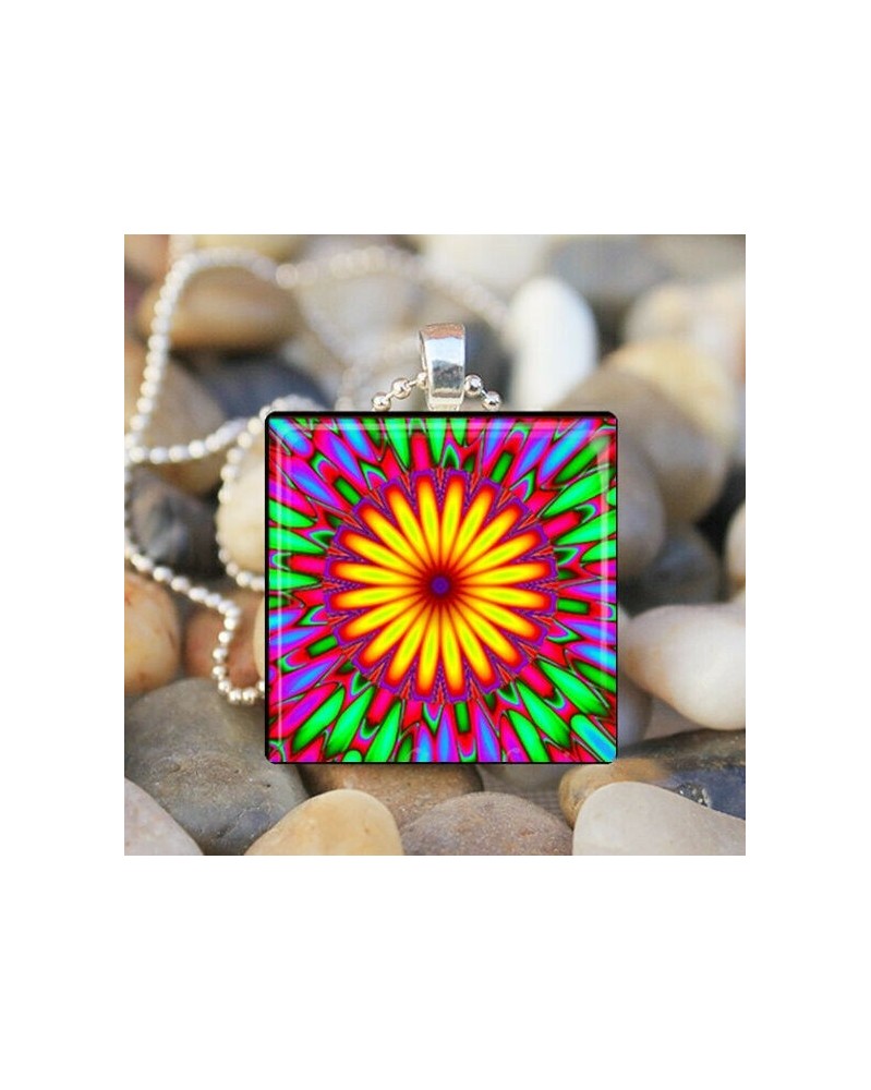 Nincs szín - Kaleidoszkóp virág mandala színes sunburst art üveg csempe medál nyaklánc