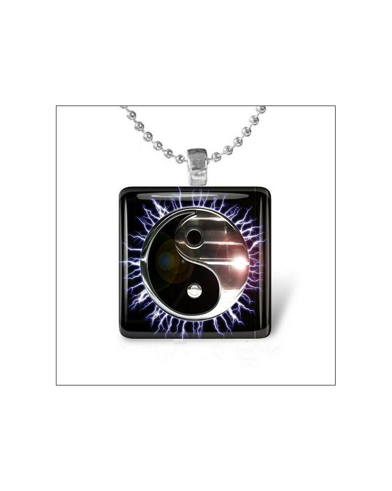 Nincs szín - FÉM YIN YANG elektromos nap fekete ezüst üvegcserép ezüst medál nyaklánc