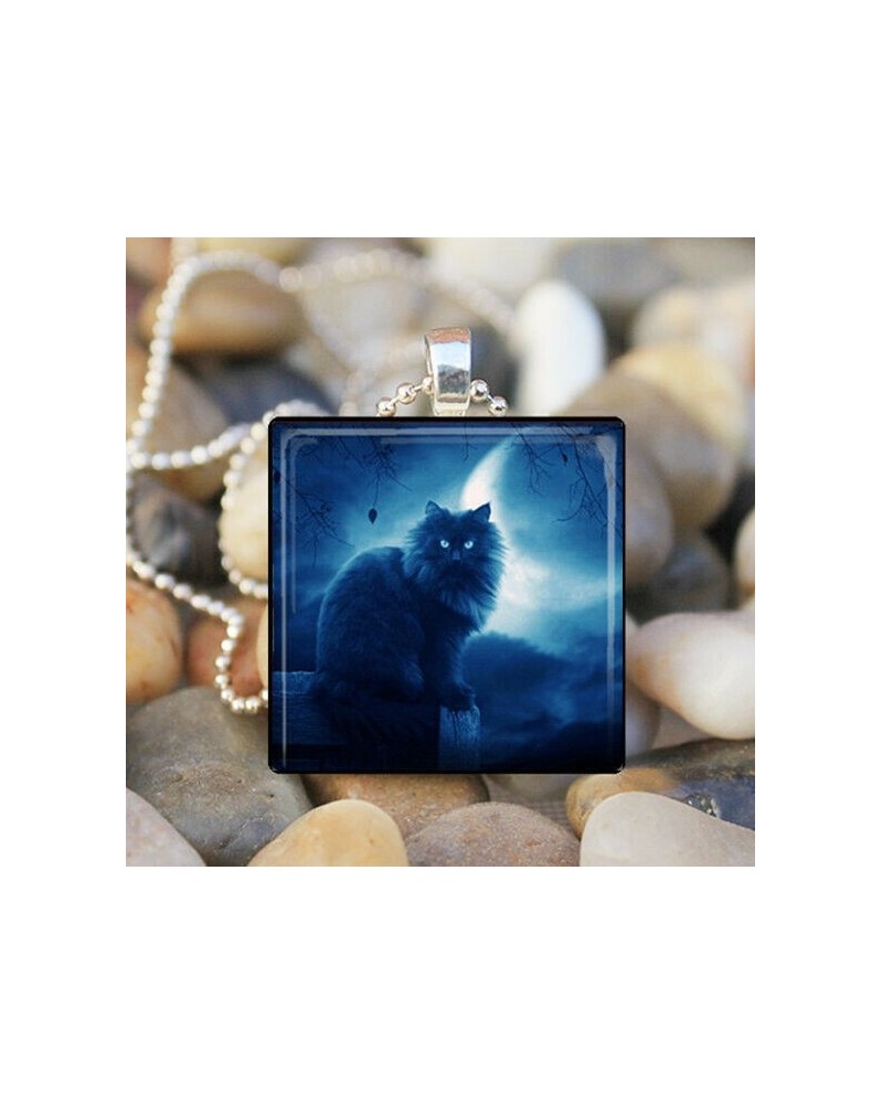 Nincs szín - FEKETE Macskahónap Kitty Cat Halloween üvegcserép medál nyaklánc ékszer