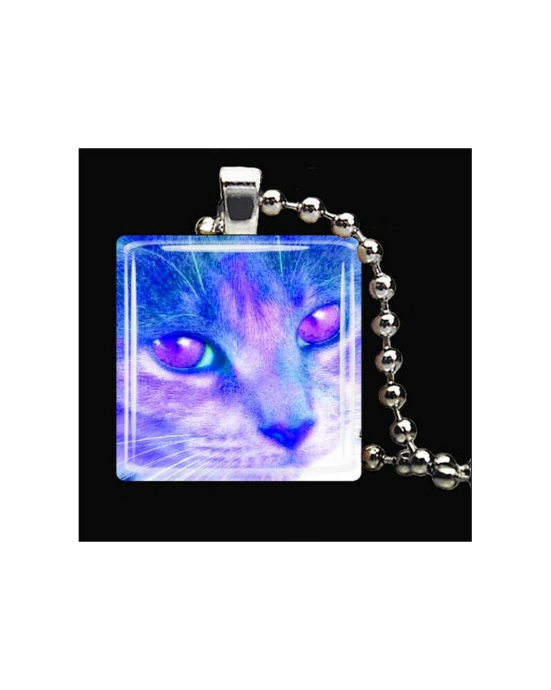 Nincs szín - IGAZ KÉK KITTY Cat Eyes Cica üvegcserép medál nyaklánc