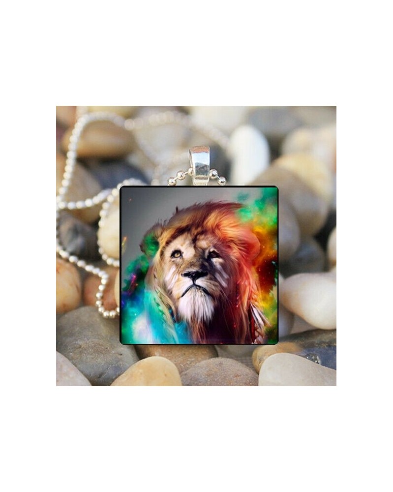 Nincs szín - pszichedelikus oroszlán nyaklánc, üvegcserép medál nyaklánc oroszlán ékszer ékszer