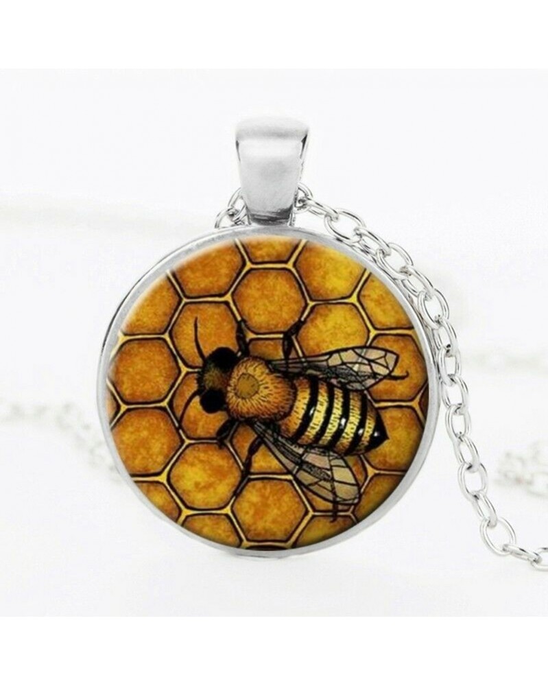 Nincs szín - Kreatív A méhek nyaklánc üveg Cabochon medál lánc ajándék nőknek ezüst