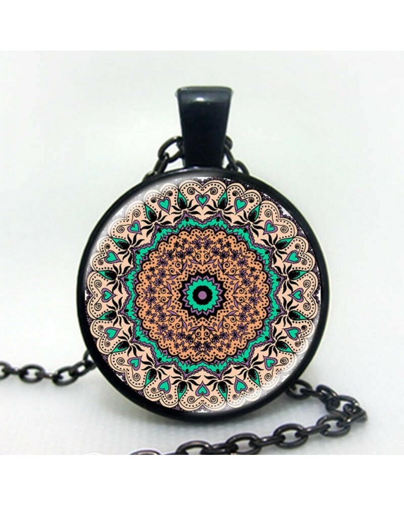 Nincs szín - Vintage Art ajándék Splendor of Color Kaleidoscope Mandala nyaklánc fekete