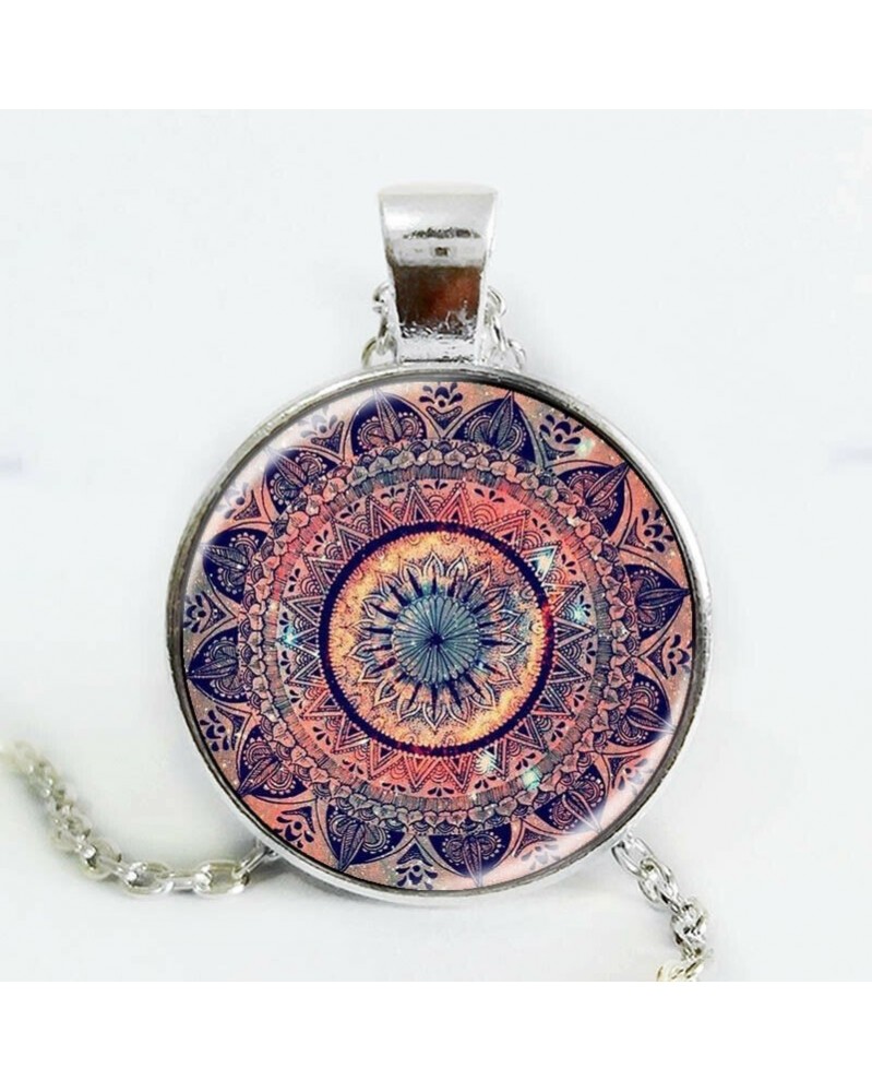 Nincs szín - Vintage Art ajándék a színes Kaleidoszkóp Mandala nyaklánc ezüst ékszerek pompája