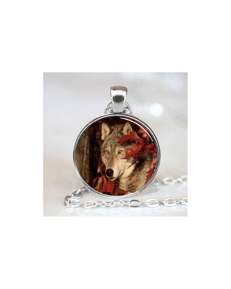 Nincs szín - Vintage Wolf Cabochon ezüst üveglánc medál és nyaklánc női ékszerek Új